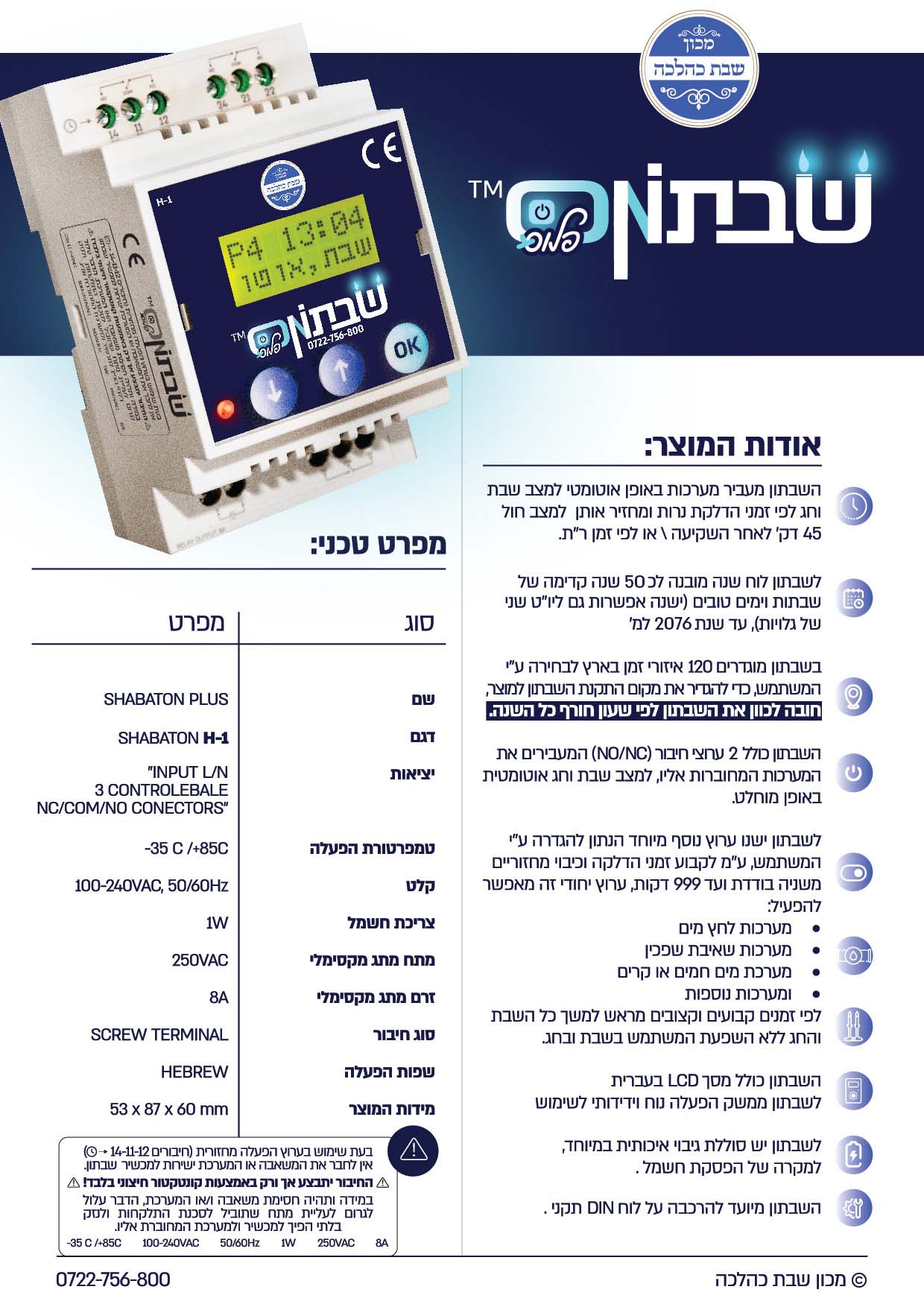 שבת כהלכה-התקן שבת בד"ץ